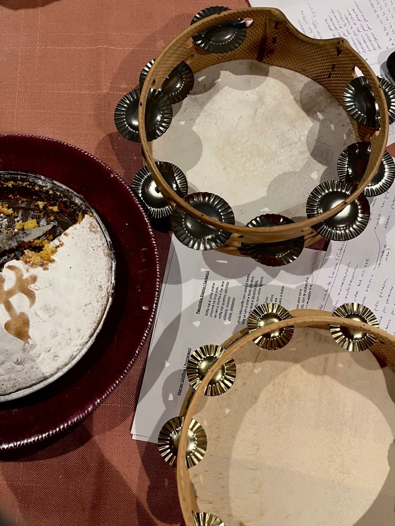 Mentres lle sigo a dar voltas a cuestión veñen dúas amigas a casa a merendar e tocar a pandeireta —e a actualizarnos a vida tamén—; e outro día vou a aldea dunha delas a comer cocido coa súa nai e pasar outra tarde de café e pandeireta. Sentímonos coma se tivésemos 15 anos e tivésemos quedado a facer a tarea. Aprendo a usar unha cociña de ferro (e a quentar o lombo nela heh), entro por primeira vez nun hórreo (heh), e sinto que é unha mágoa non ter aldea (nin nai), pero que é unha sorte ter amigas e tantas outras nais. Penso que estas cousas son compartir vida. Aínda que si, é certo, todas quereríamos vernos máis. E para min a cuestión reside aí.